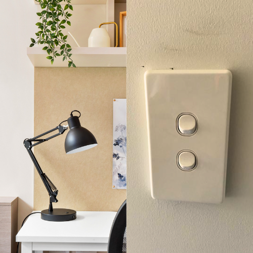 Dust off the desk lamp and light switches. Make sure it is turned off.